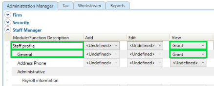 Under the Staff profile module > Select Grant in the View column